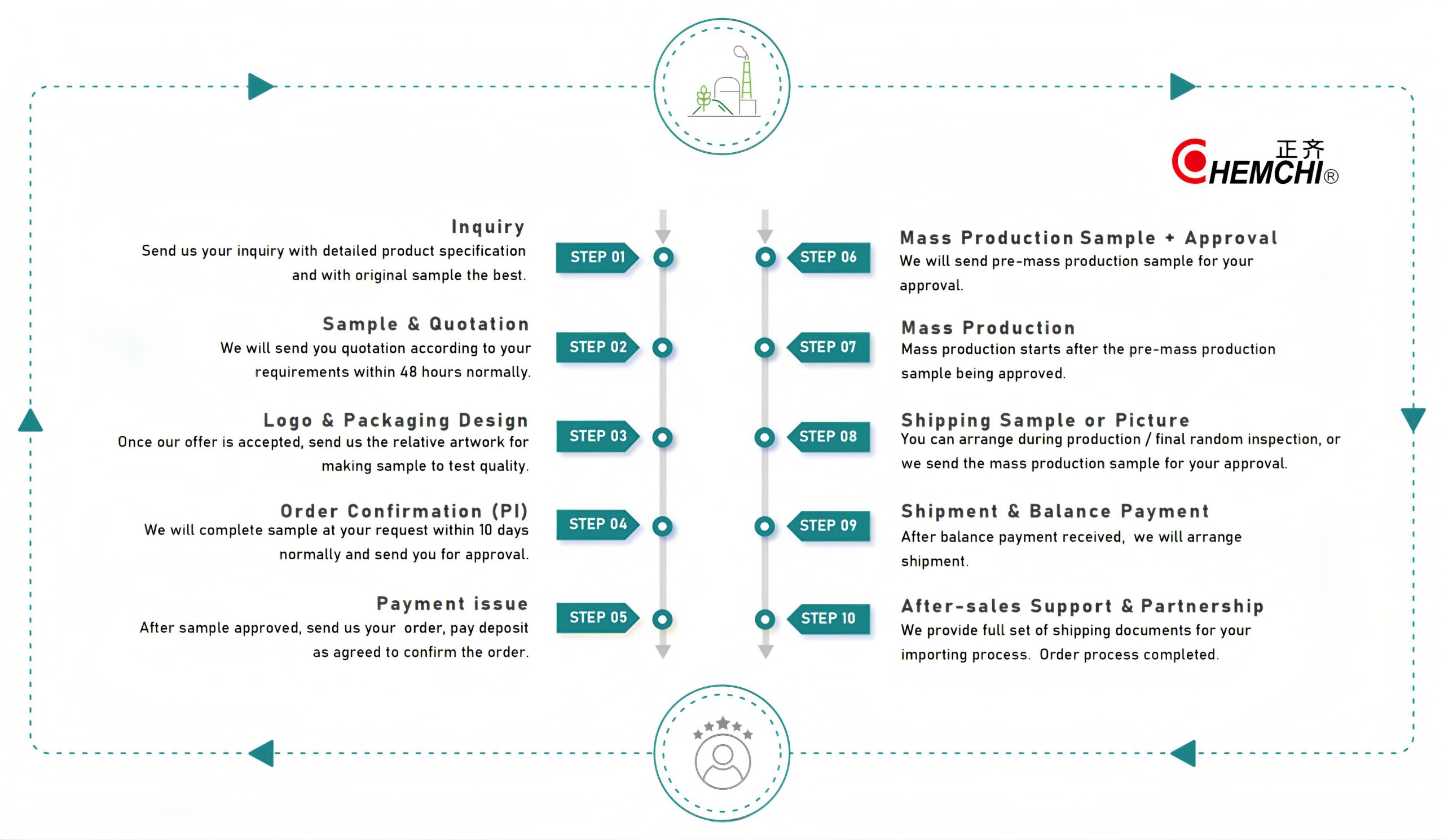 Custimised Service Chemchi has been providing excellent OEM/ODM services for 25+ years, we are committed to shape our clients’ idea from concept into physical products. Please tell us your idea today and let’s make it happen. Our OEM/ODM Flowchart Get In Touch Please enable JavaScript in your browser to complete this form.Please enable JavaScript in your browser to complete this form.Name *FirstLastEmail * Name Message Email MessageSEND